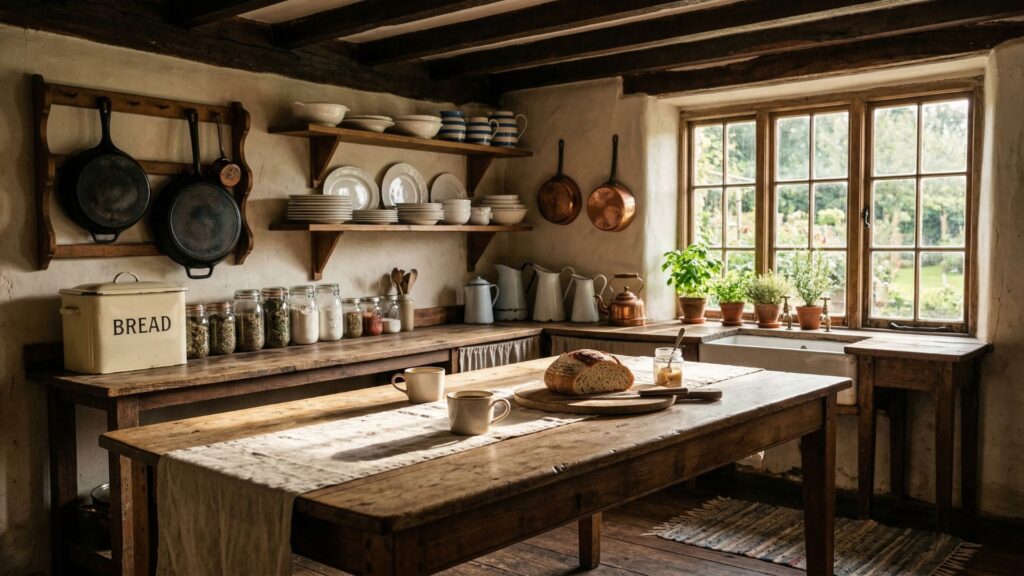At the same time, this style remains flexible enough to fit modern homes. Even a few thoughtful touches—such as a wooden cutting board, a linen runner, or a set of enamel mugs—can bring warmth and character to an ordinary kitchen. Little by little, those small details begin to transform the space.